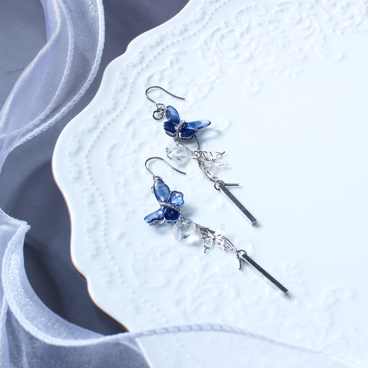 青の羽衣を纏った蝶は、夜の静寂を思わせる透明感と神秘的な輝きを纏い、